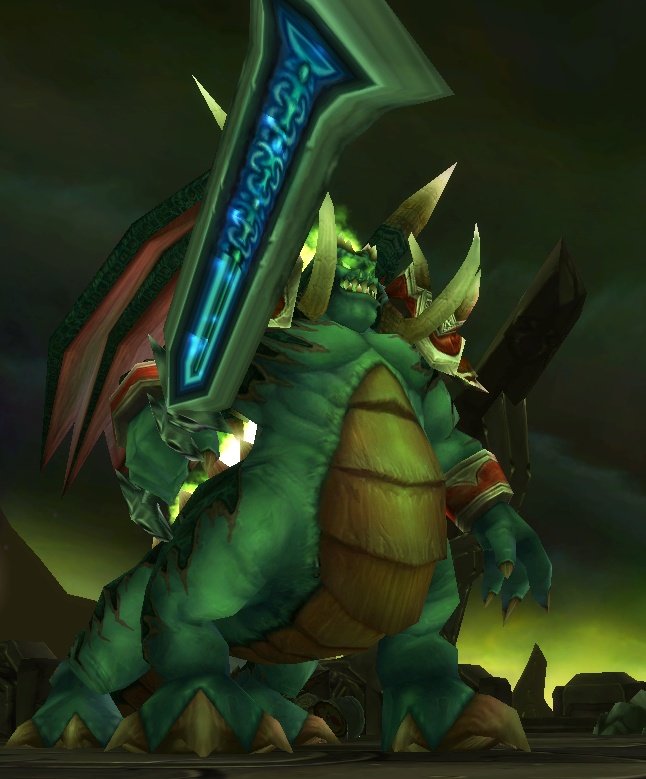 - Зеленокожий орк, в меховой шапке, сапогах и перчатках. На теле кожаная куртка. В броне предпочтительны серые, черные и серебряные цвета. В левой руке односторонний топор. За поясом небольшой кинжал.
