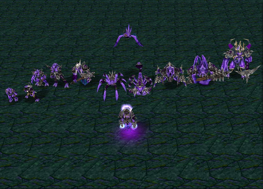В идеале не нужно будет создавать все модели с нуля, достаточно будет взять модели построек Зергов из Starcraft и изменить текстуры. Разве что необходимо будет сделать upgrade,first и upgrade,second для "забытого" и переделать ему анимацию постройки под эту модель