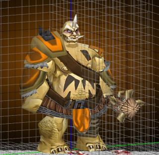 - Зеленокожий орк, в меховой шапке, сапогах и перчатках. На теле кожаная куртка. В броне предпочтительны серые, черные и серебряные цвета. В левой руке односторонний топор. За поясом небольшой кинжал.