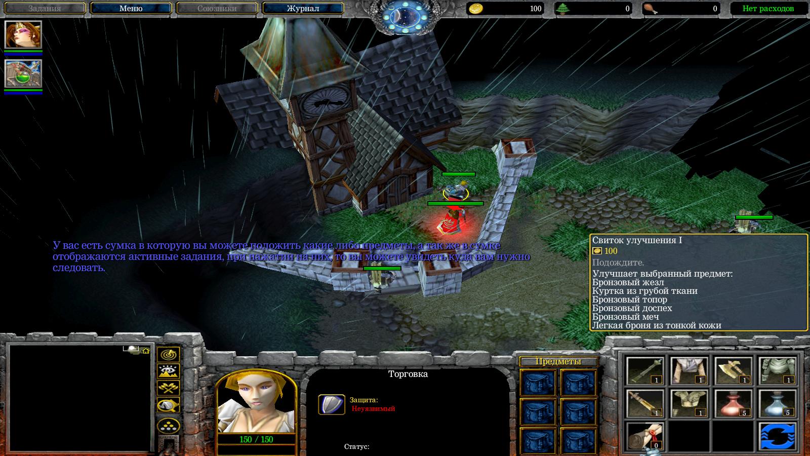 Карта предназначена для совместного сюжетного прохождения, карта рассчитана на прохождение от 1 до 4-ых игроков. Что до самого геймплея, готов вас заранее предупредить, воскреснуть в этой карте практически не возможно, поэтому старайтесь не умирать, для вас это будет фатально. Прежде чем напасть на врага, лучше оцените его и подумайте, сможете ли вы одержать победу над своим противником, то в крайнем случае лучше сначала подкачаться и уже потом решать проблему. В карте есть магазины которые не смогут порадовать вас разнообразием своих товаров, но основные товары которые у них продаются, броня, оружие или магические предметы, вполне могут улучшаться при помощи свитков, свитки так же разбиты по уровням, свиток первого уровня сможет улучшить лишь слабые предметы, в дальнейшем он не сможет улучшить предметы, для этого понадобится свиток более высокого уровня и т.д.
