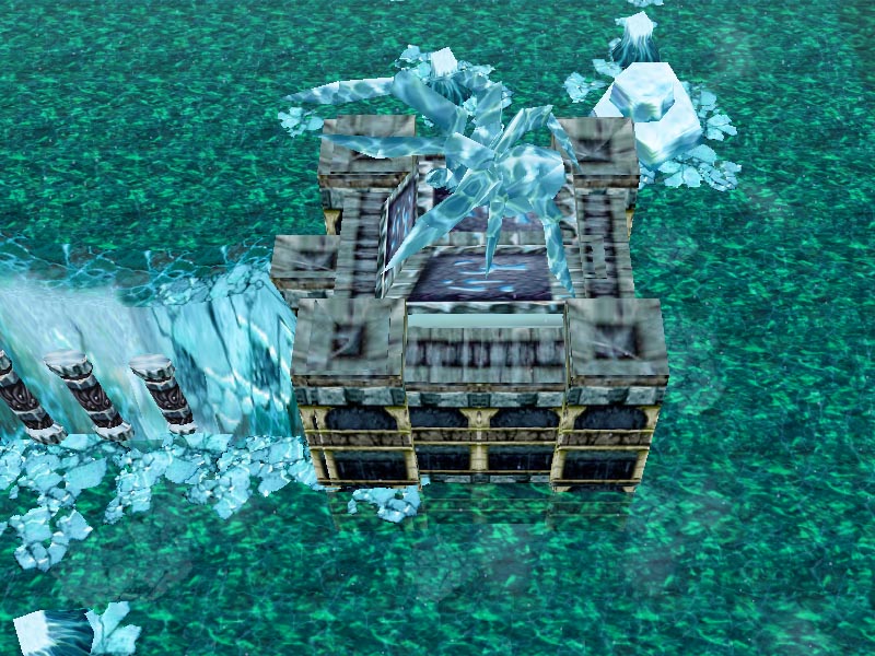 Ничего особого;) Давайте разберемся от чего такое разительное отличие. Ну во-первых цветовая гамма тумана + воды + декораций + тайлсетов (в игре неба нет и все это не выглядит так гармонично). Заметьте, что тут использован один цвет и множество его оттенков. Во-вторых плавность линий - колонны и склон, плавно опускающиеся, и несколько хаотично разбросанные на фоне ледники только подчеркивают оригинальность композиции (в игре это тоже невидно). Перспектива (в игре ее тоже нет) - ну тут "no comment". Вот как от подборки ракурса зависит качество скрина.
