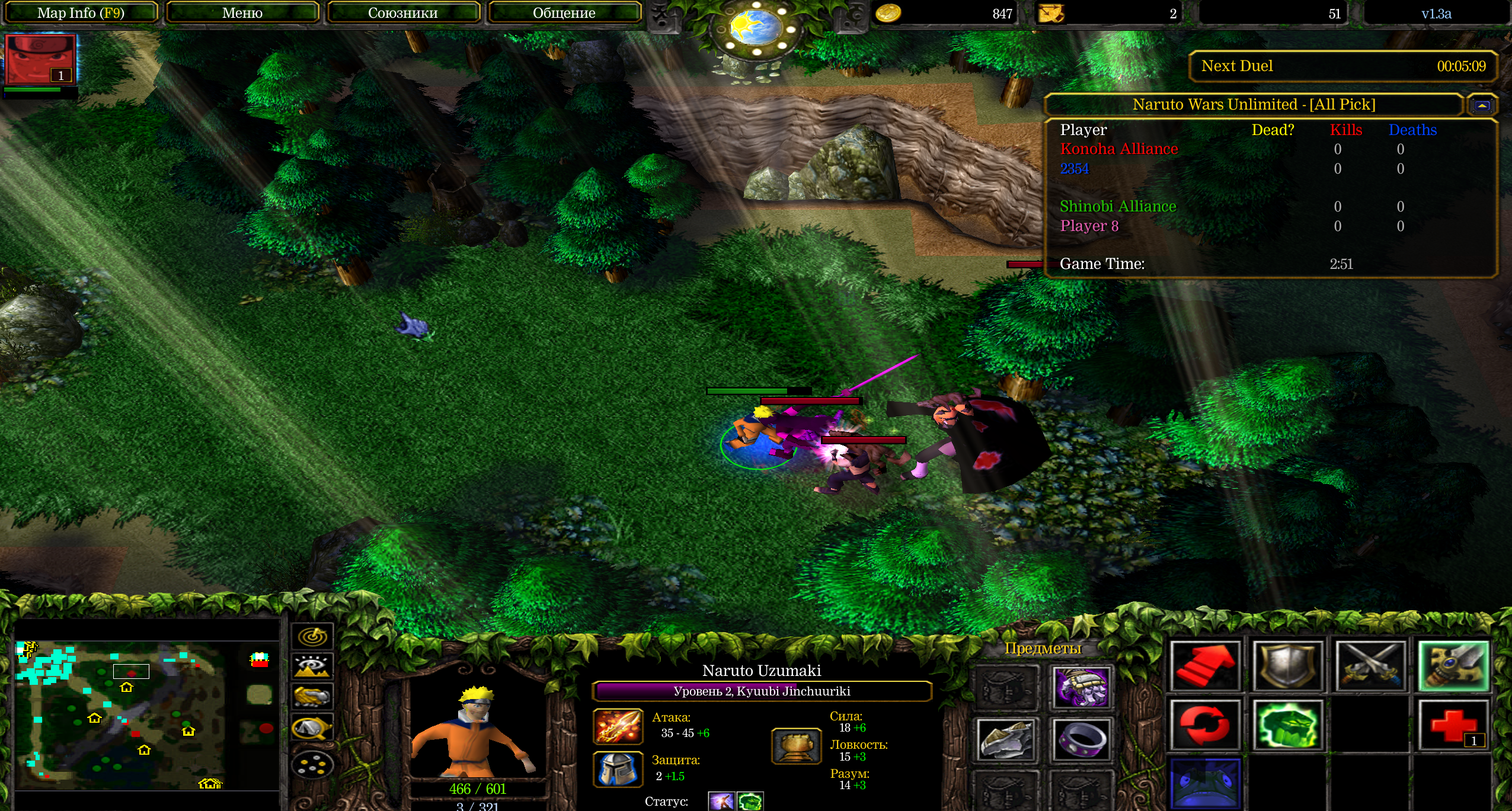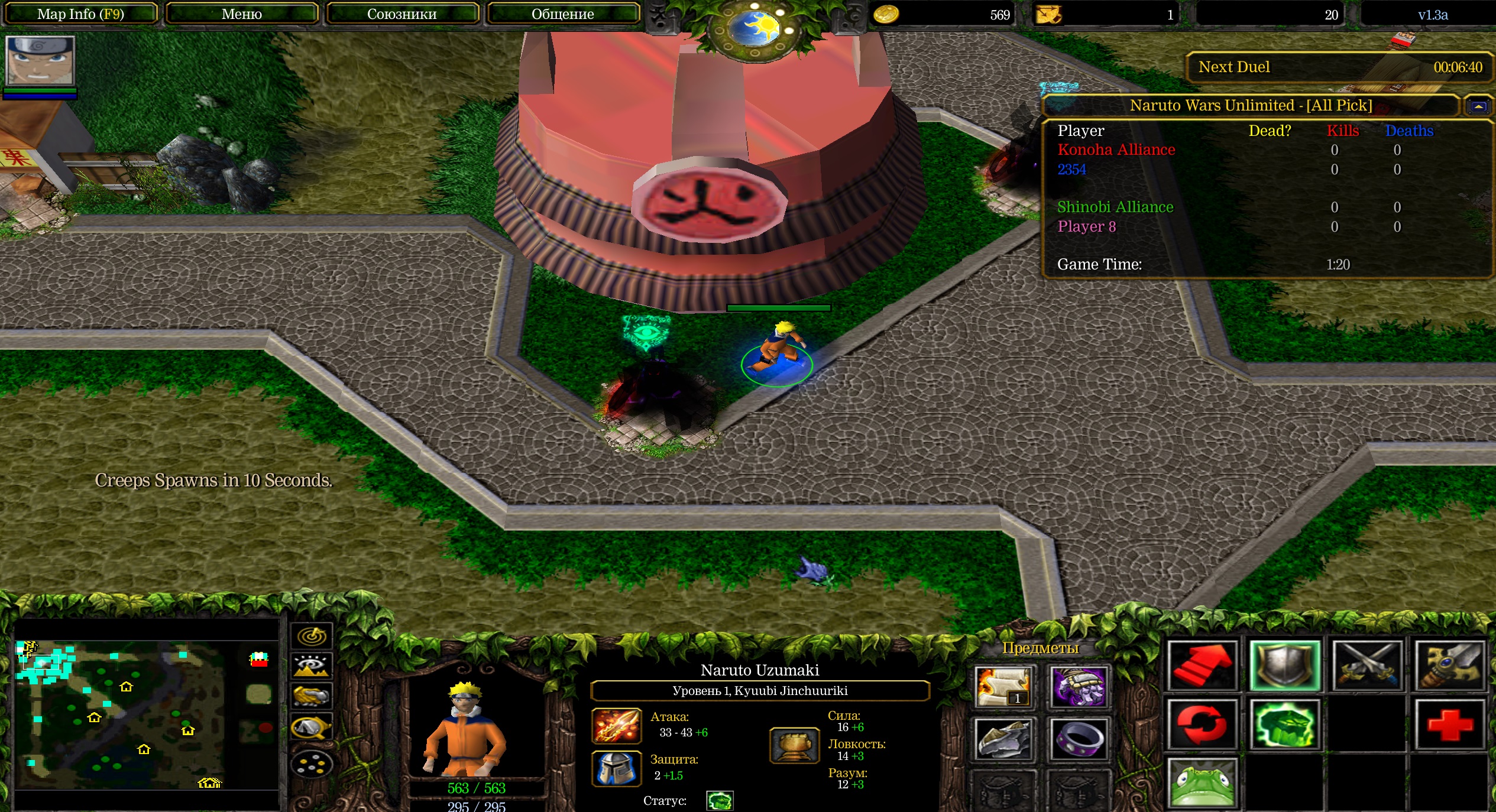 Возможно многие помнят такую старую карту, как Naruto Wars. Она же Naruto 3rd Shinobi Wars, она же позже Naruto Wars Unlimited, десятилетие назад в эту карту играли очень многие, на батлнете, на Алькаре и в Гарене. Карта по принципу доты, которая хоть и заимствует её основные принципы, но всё таки сделана не под полную копирку. Одна из самых любимых карт моего детства с которой я начинал играть в Warcraft по сети. Более поздние версии этой карты скатились в унылую копирку доты, из неё удалили дуэли и в целом карта потеряла свой шарм, вскоре будучи брошенной и забытой, самая популярная версия этой карты была NWU v1.2.2. И именно на её основе я сделал её ремастер.