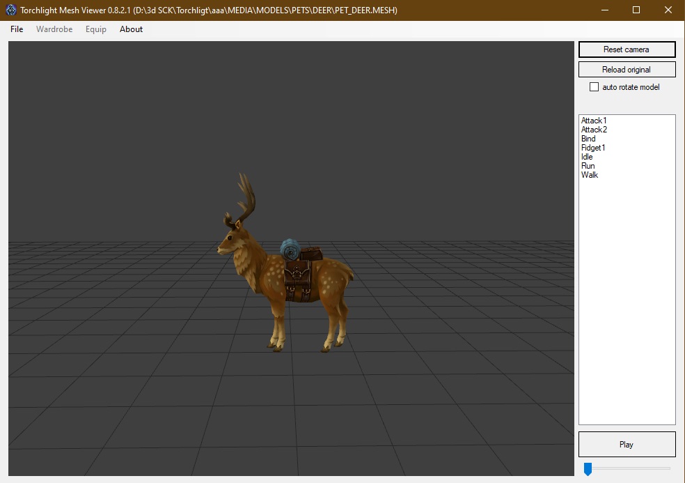 • Torchlight Mesh Viewer. Просмотрщик моделей Torchlight 1 и 2. В целом, сыроват, часто подхватывает не все анимации, на некоторых моделях переворачивает текстуру, и очень плохо работает с моделями, у которых сдвинуты PivotPoints (к этому ещё вернёмся). Но иногда для быстрого ознакомления с моделями довольно удобен, так как работает шустрее, чем 3д макс и блендер. Лежит тут и в приложенном архиве.