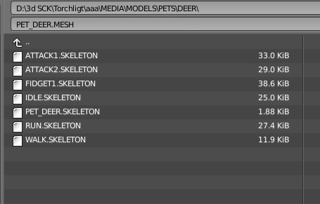 • Файл, имеющий такое же название, как и модель (в данном случае PET_DEER.SKELETON) содержит в себе однокадровую анимацию bind. Это что-то вроде базового положения костей.