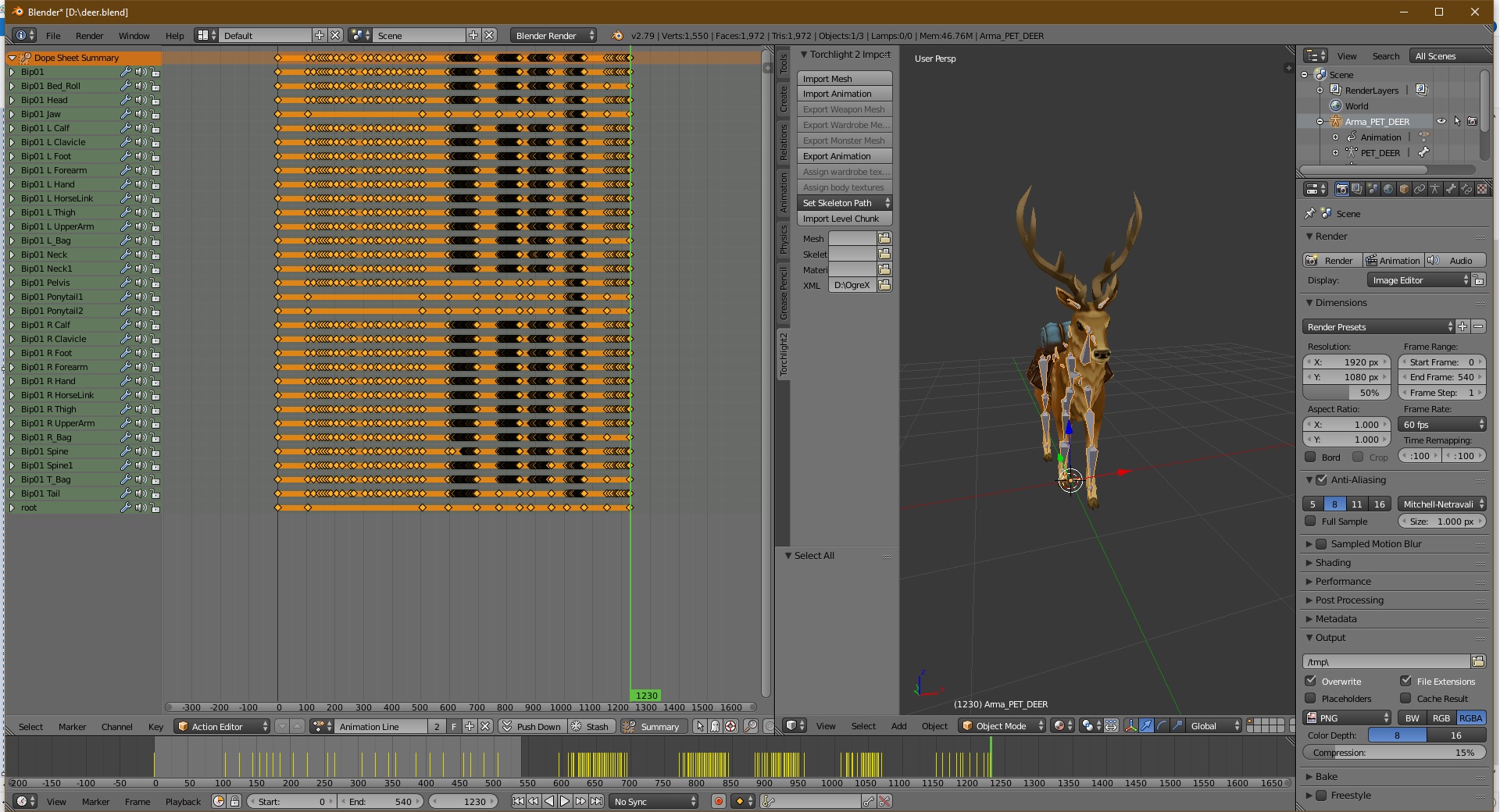 По старым чертежам идём во вкладку Torchlight 2 и импортируем наш меш, лежащий по пути MODELS\PETS\DEER.