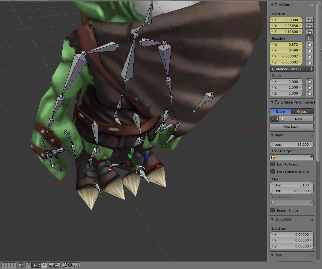 Закрываем все замки (24.1), кроме Z Location, нажимаем на клавишу G, и опускаем кость (24.2) до тех пор, пока наш олень не окажется ниже оси (24.3).