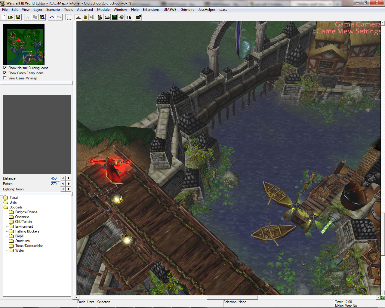 Если честно, то примерно этом месте пирсы мне окончательно надоели и я вспомнил свой оригинальный план. Варкрафт имеет определенное количество декораций, иконок и тд в своих ресурсах, которые никогда не были использованы в игре, и их забыли выкинуть. Среди них вот этот прекрасный мостик. Его путь нужно вручную прописать в строке.