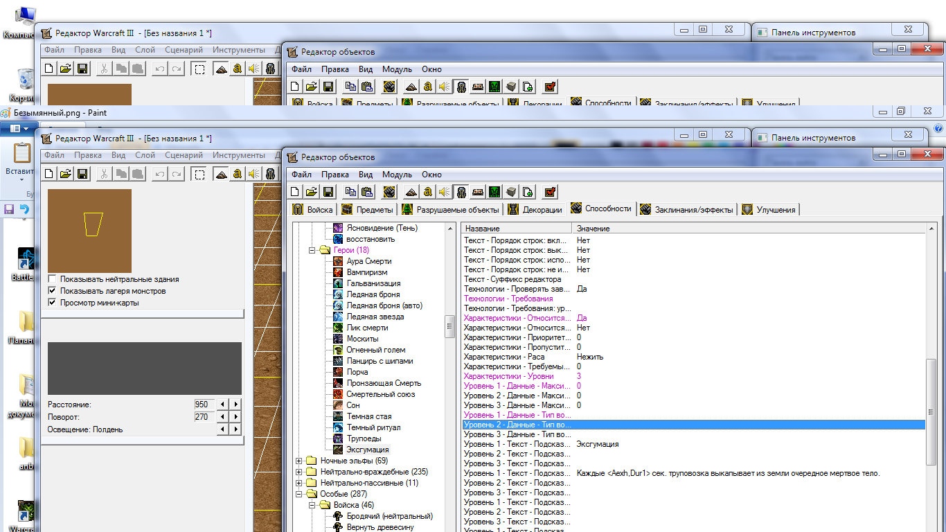 , относится к герою: да, убираем в требованиях эксгумацию, ставим перезарядку(в моем случае 20\15\10) ставим затрачиваемую ману(в моем случае 50\75\100) переименовываем на лечение