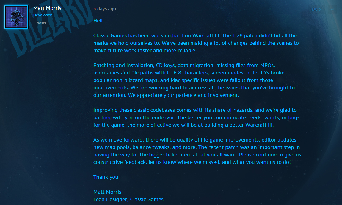 - Если вы видите ошибку "Что-то пошло не так..." (Something went wrong...) во время обновления, запустите “Warcraft III Launcher.exe” из установочной папки варкрафта для завершения обновления.