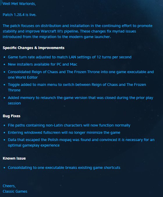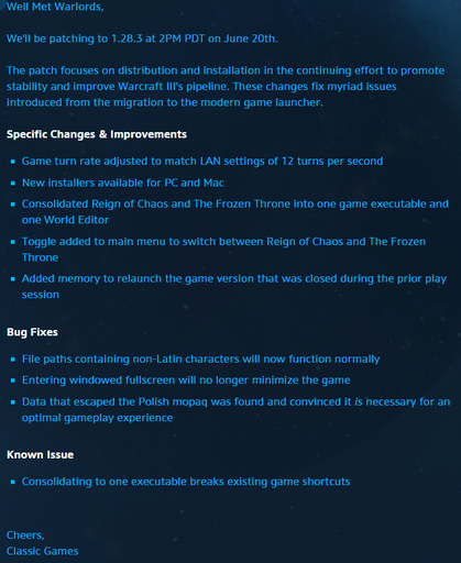 - Если вы видите ошибку "Что-то пошло не так..." (Something went wrong...) во время обновления, запустите “Warcraft III Launcher.exe” из установочной папки варкрафта для завершения обновления.