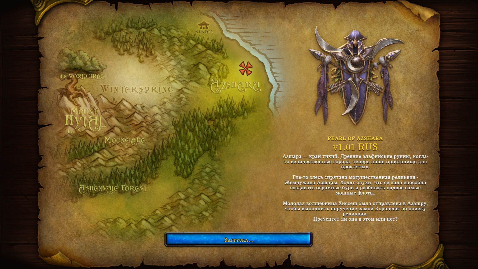 "Ходят слухи, что в Азшаре, спрятан один из первобытных стихийных артефактов - Жемчужина Азшары. Это волшебное ожерелье с особыми камнями, каждый из которых наполнен чистейшей энергией владыки вод Неплутона. Его сила способна вызывать тайфуны, раскалывать скалы и топить целые флоты…