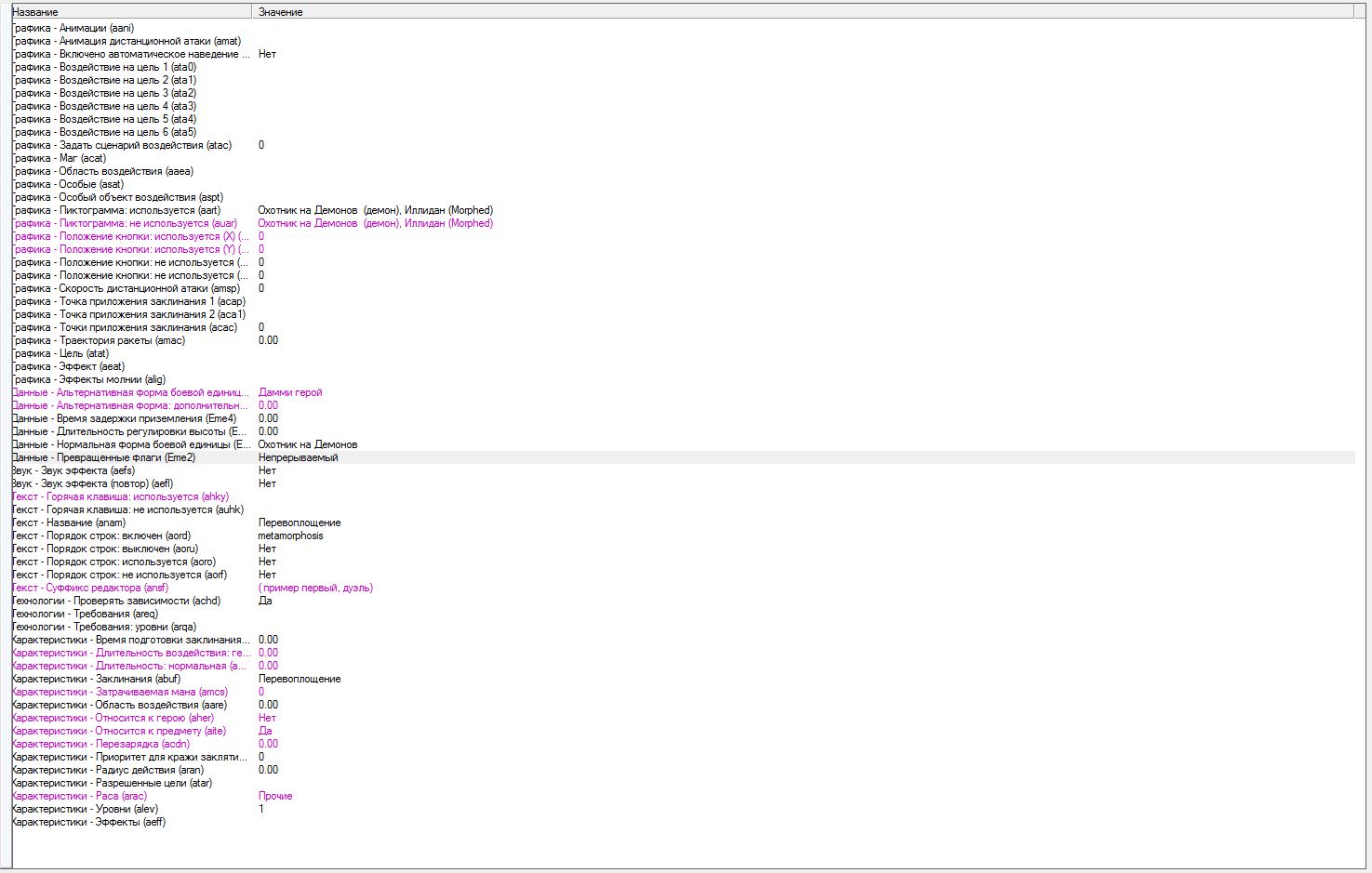 Сейчас получил странный эффект с руной метаморфозы, модель юнита осталась прежней а вот параметры атаки изменились на те те что были у альтернативной формы, мб это связано с тегами анимации, попозже проверю с другими героями.