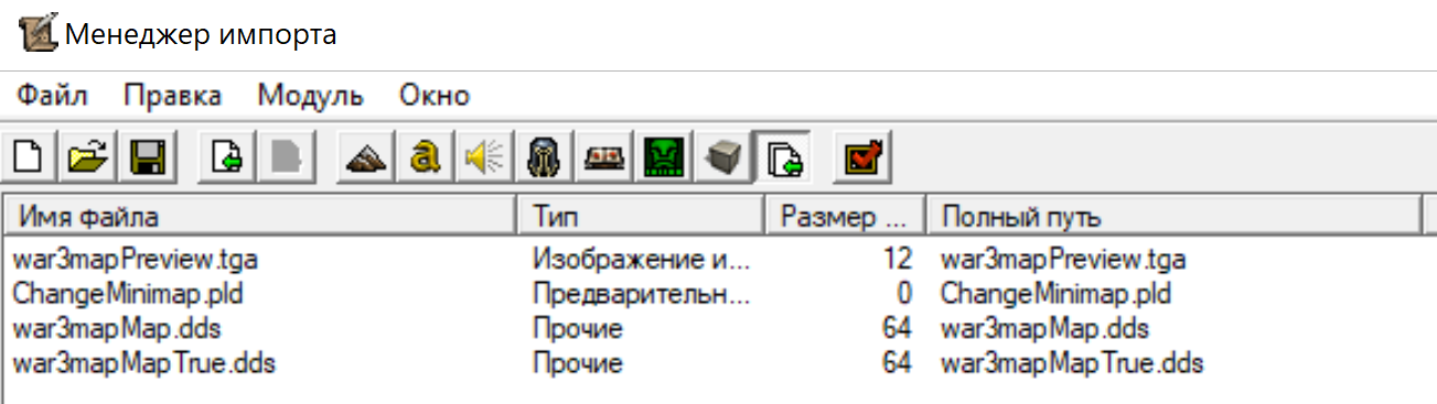 Здесь "war3mapMapTrue.dds" - полный путь к созданному вами изображению игровой карты (название файла произвольно).