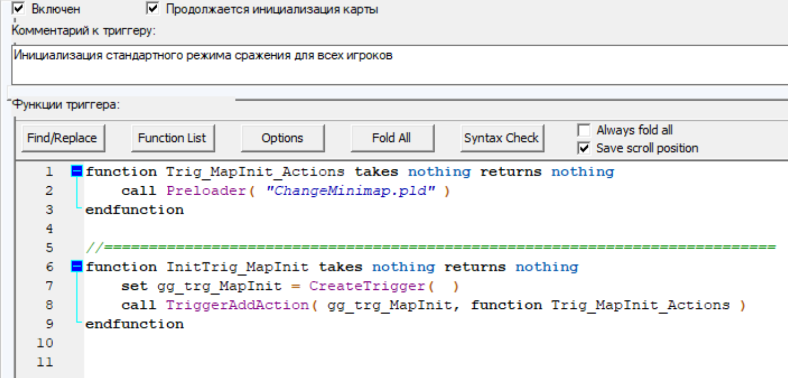 Файл ChangeMinimap.pld сохраняем и импортируем в карту. Добавляем Preloader("ChangeMinimap.pld") в функцию инициализации (можно через GUI):
