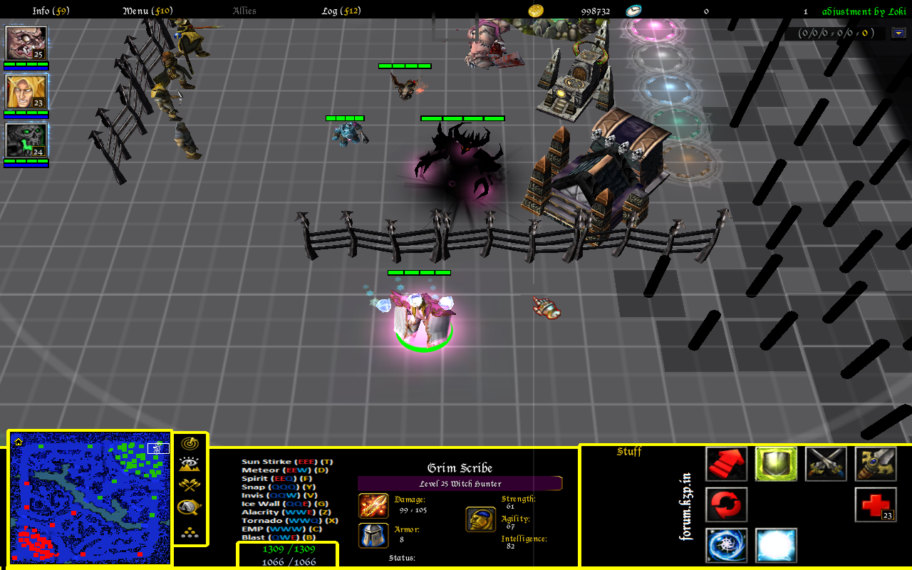 • модель Mortred не становится прозрачной, визуально добавлен радиус Meat Hook 4 уровня для героя Pudge — Butcher, у героя Invoker'a вместо портрета содержание подсказки -il, ему же добавлен тимкалор, модель героя Shadow Fiend немного подредактирована