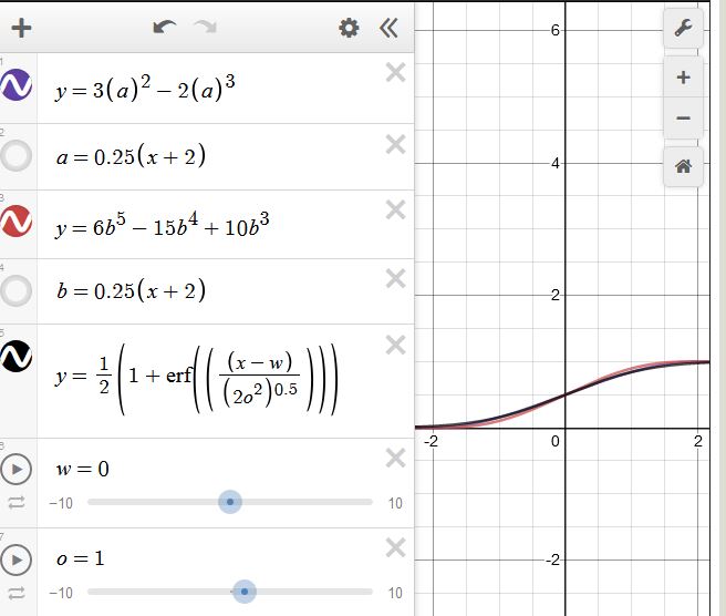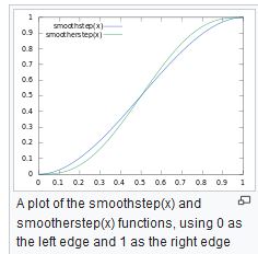 Самая простая функция такого вида что я видел была в статье о шуме Перлина, как сглаживающая функция. Smoothstep, открываем подраздел этих функций, берем первые 2 типа, смотрим: