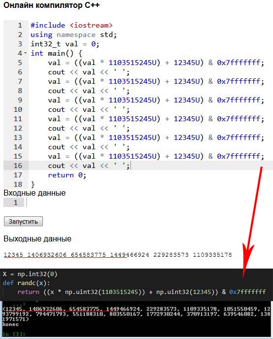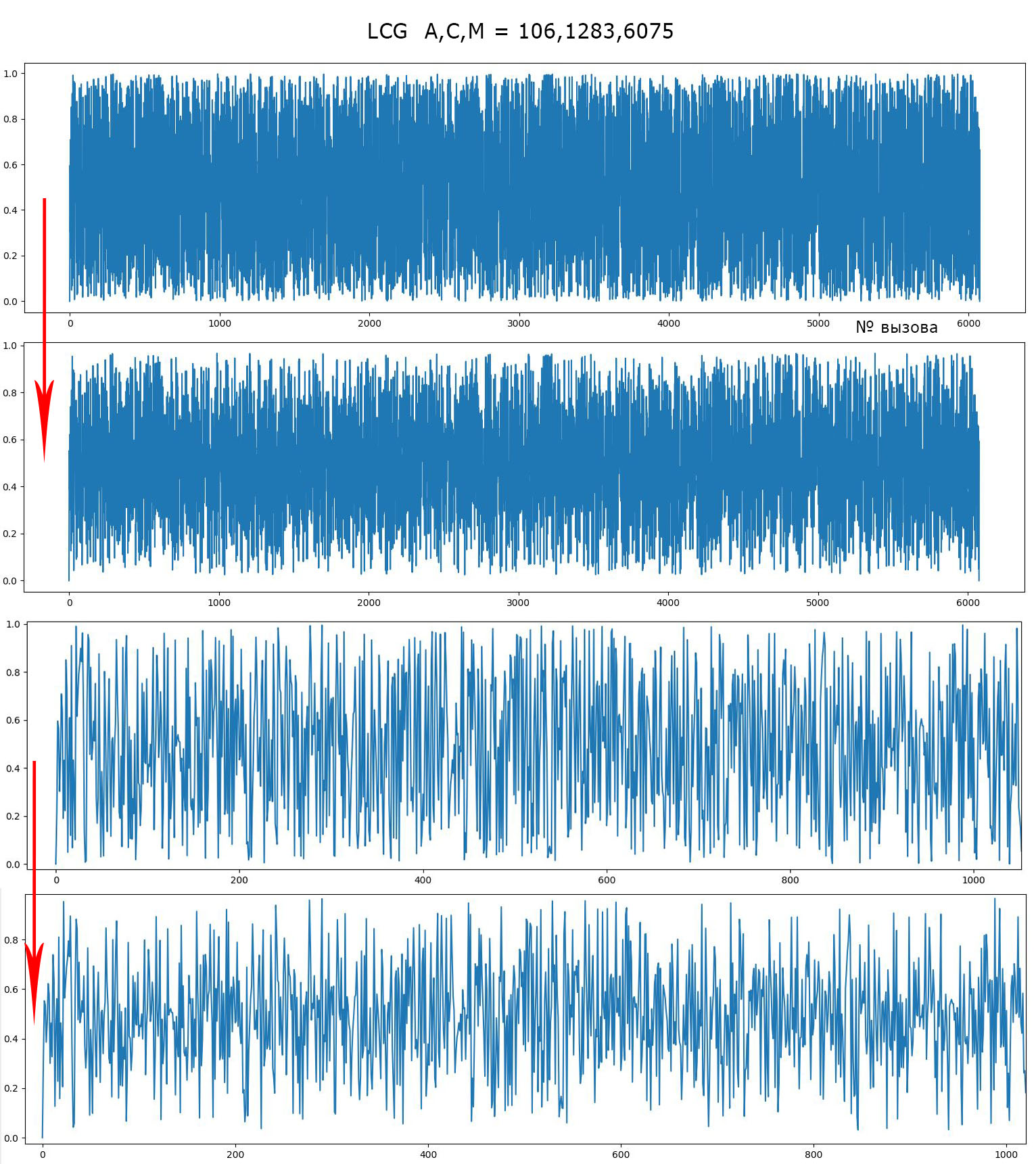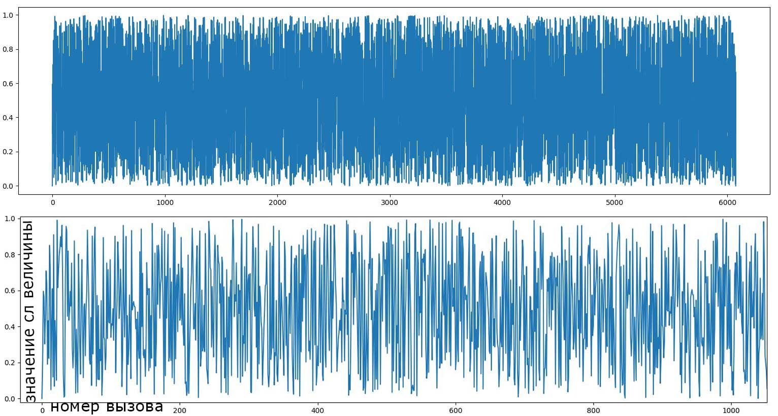 Каждое число в нашем генераторе внутри 1 периода встречается 1 раз, совпадений нету.