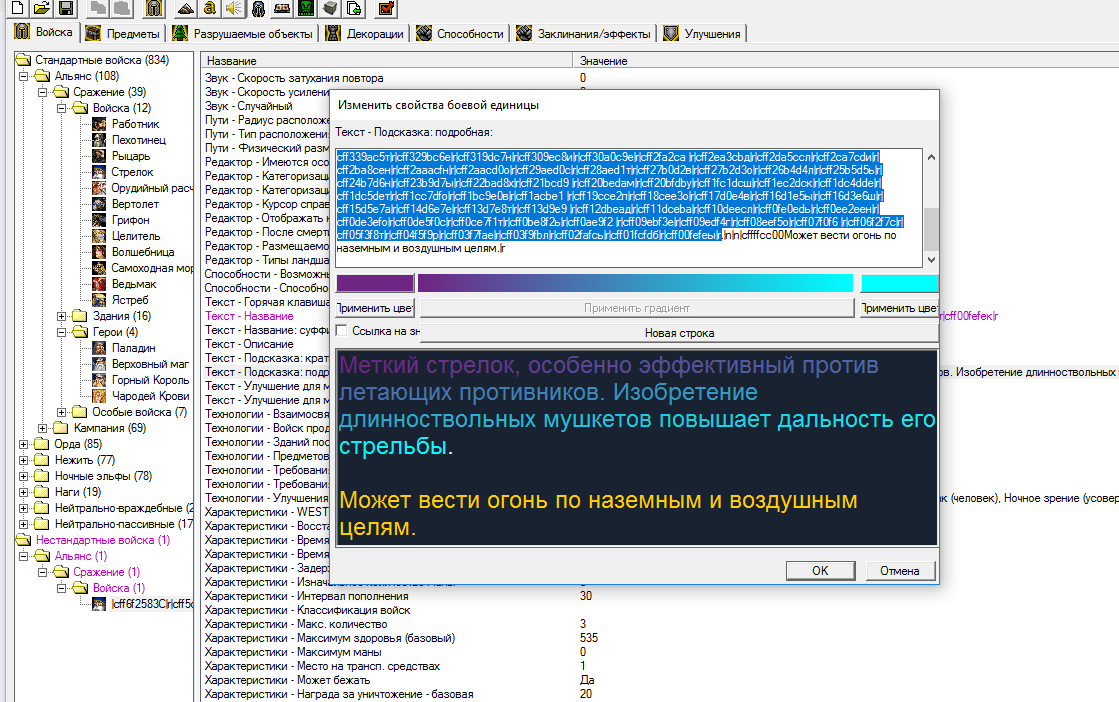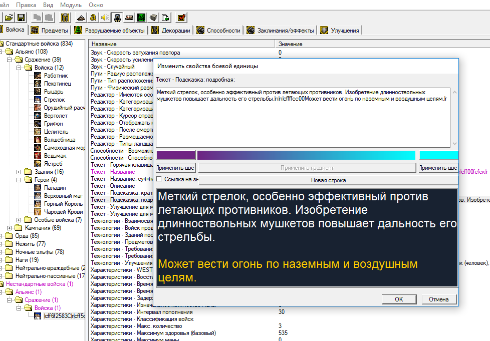 PornoMishka, ну я сижу на 1.26, не знал об этом, а вот менять тип атаки, дальность, заменять модельку юниту, это выглядит просто чудесно. Если там, конечно, можно все поля менять.