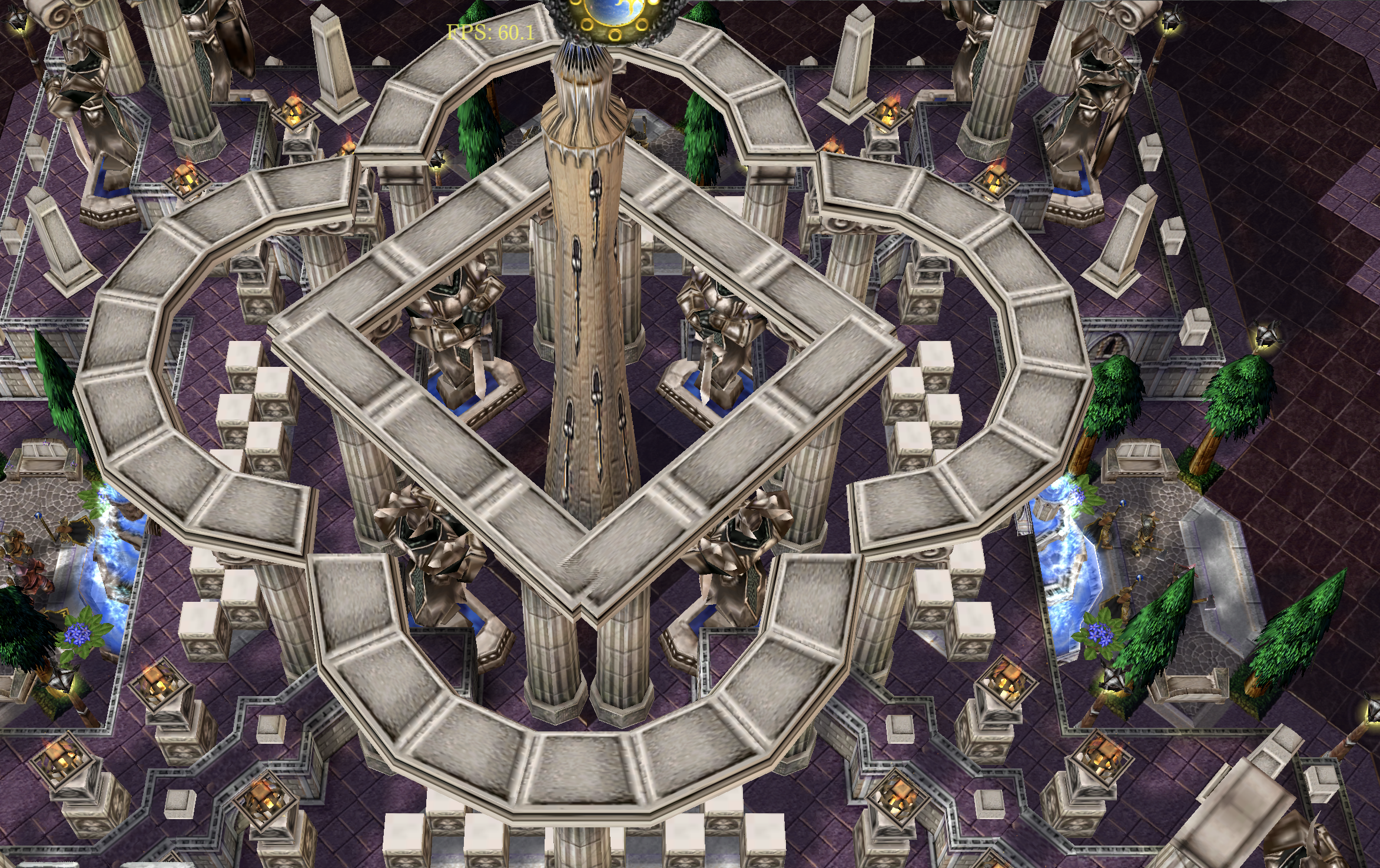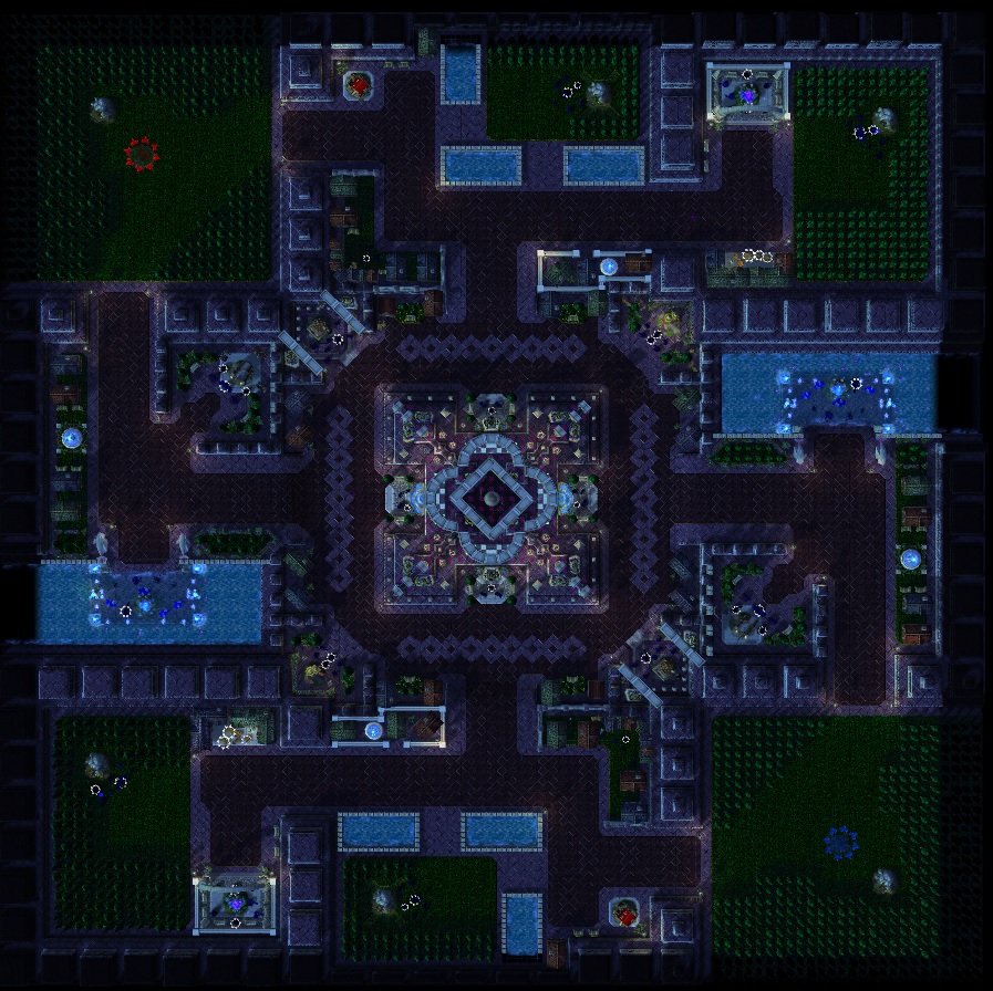 По поводу центра карты не могу с тобой согласиться, поскольку там я все заложил блокираторами пути, не пролететь ни пройти там нельзя. Мешать это ни коим образом не должно, центр карты закладывает круговую природу перемещений дуэлянтов. Если ты вспомнишь карту Стратхольм от близзард(на самом деле ужасная карта, которая с настоящим Стратхольмом не имеет ничего общего), то там и вовсе центр карты был закрашен черной границей и карта представляла собой по сути огромное колесо.