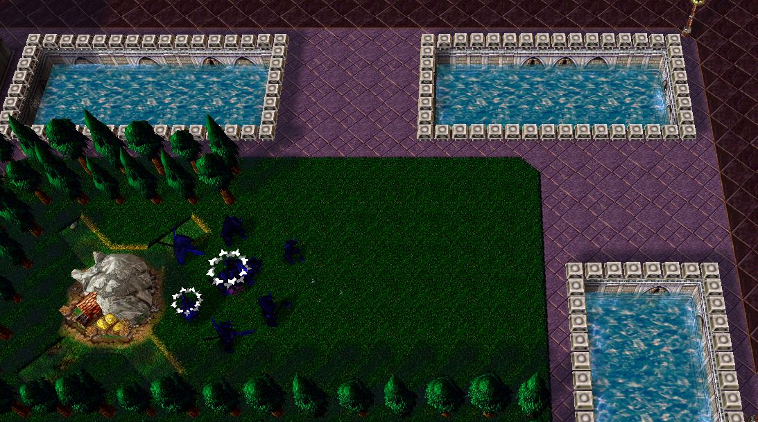 По поводу обсерватории я думал, однако отказался от этой идеи по двум причинам, во-первых это непривычно для обычного игрока в melee, а это все-таки что ни на есть самый стандартный стандарт варкрафта как ни крути. Во-вторых чтобы юнит стоял рядом с обсерваторией, нужно делать проход наверх, а этого я как раз не хотел, тогда центр карты станет проходными потеряет свою недосягаемую таинственность. Наблюдение за звездами - удел седых мудрецов, а не любого существа)