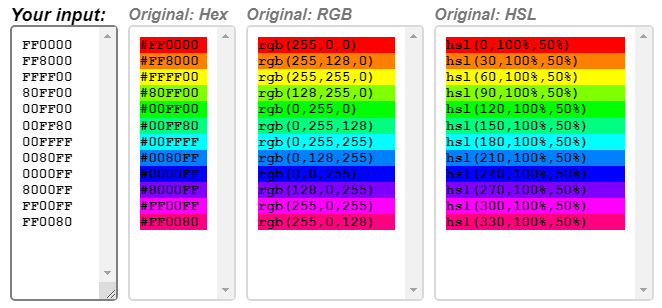 | FF00FF | rgb(255,0,255) | фиолетовый |