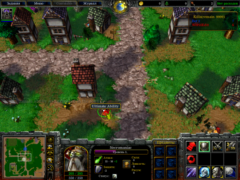 - Каждые 30 секунд в центре так называемого Городка, в случайном месте появлется бонус, который выдаёт 300 маны и случайную ульту
