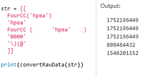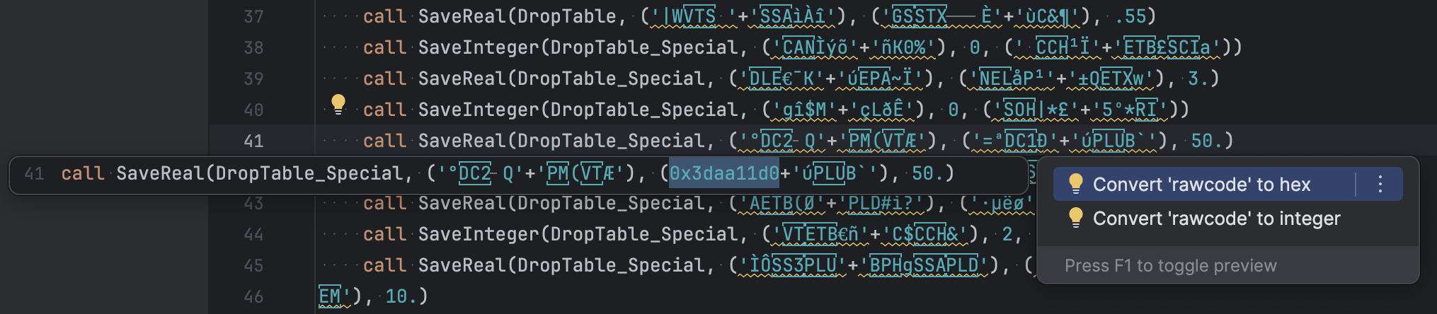 Их можно увидеть в редакторе, нажав Ctrl+D, но что значат эти буковки и почему их обязательно четыре? Всё просто - равкоды это байтовое представление числа. Парсер встретив в положенном месте 0x27, который как в UTF-8, так и в ASCII обозначает одинарную кавычку, начинает читать байты, пока не встретит следующий 0x27.
