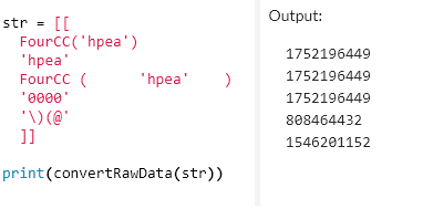 Их можно увидеть в редакторе, нажав Ctrl+D, но что значат эти буковки и почему их обязательно четыре? Всё просто - равкоды это байтовое представление числа. Парсер встретив в положенном месте 0x27, который как в UTF-8, так и в ASCII обозначает одинарную кавычку, начинает читать байты, пока не встретит следующий 0x27.