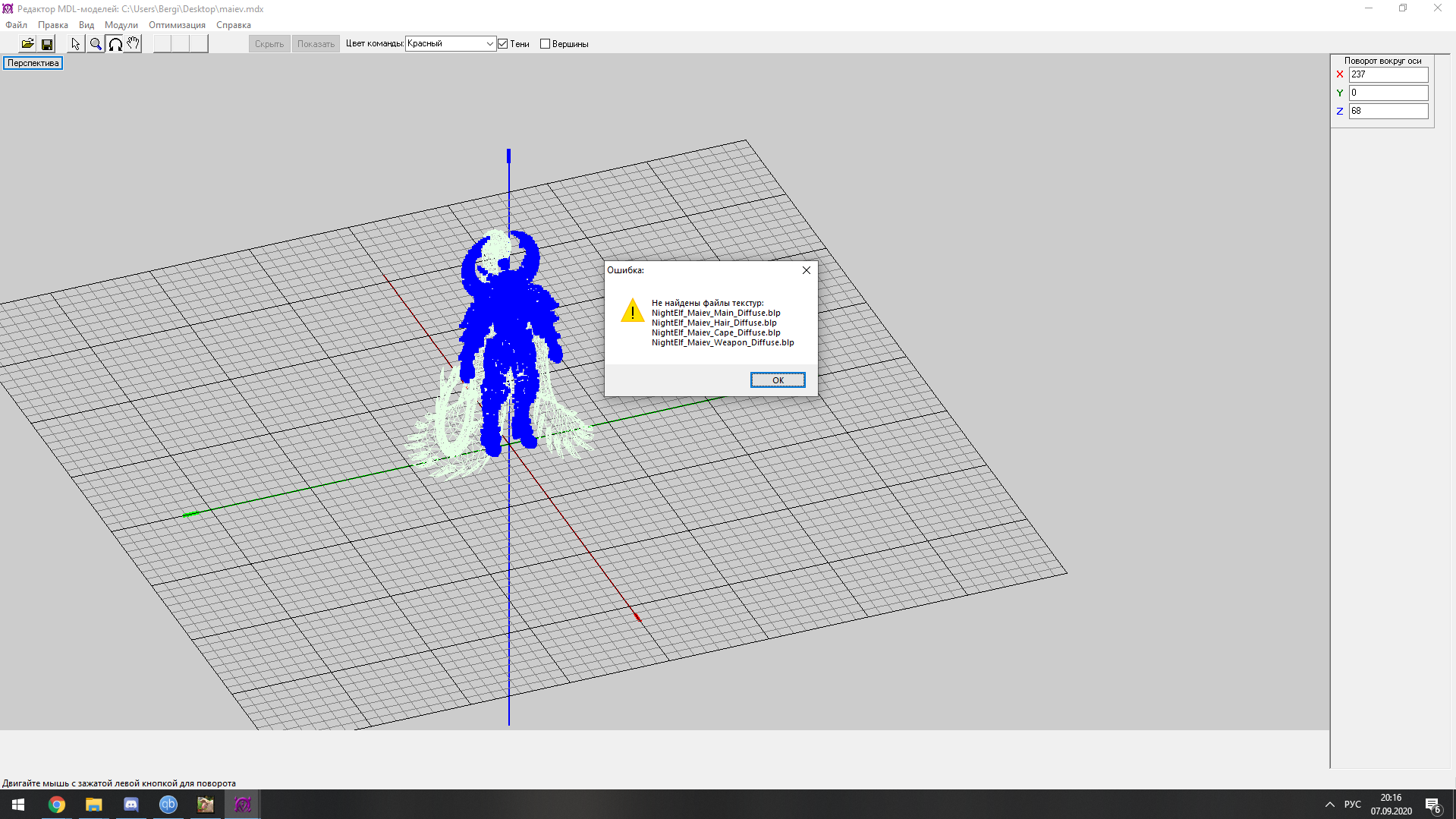 Получается, хотел поставить модель артаса дк (без коня) на классический варик. Но модель после выполнения "Scripts => HD -> SD, модель тут же потеряет текстуры, ничего страшного, сохраняем модель на рабочий стол в формате MDL" не захотела запускаться на MDLVS (сохранение через mdx запускает). Можете посмотреть?