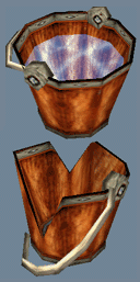 Стоячее ведро, стоячее ведро с водой, ведро упавшее на бок, треснутое ведро, треснутое ведро с водой.