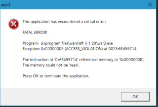 При непосредственном переходе в приложение Warcraft III все время выдается…