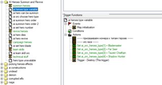 Веду хеш таблицы, чтобы проверять доступность героя. Тип юнита unavailable равно да/нет. На скрине показано как я проверяю доступность. Ессно, есть триггер, который записывает данные в хэш таблицы, чтобы сделать героя недоступным.