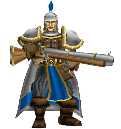 Стрелок Лордерона носит неполную стальную броню, а также стальной шлем, который обеспечивает хорошую защиту и приемлемый обзор. Вооруженный мушкетом, созданным гномами Стальгорна, готовый нанести удар по любой тяжелобронированной цели.