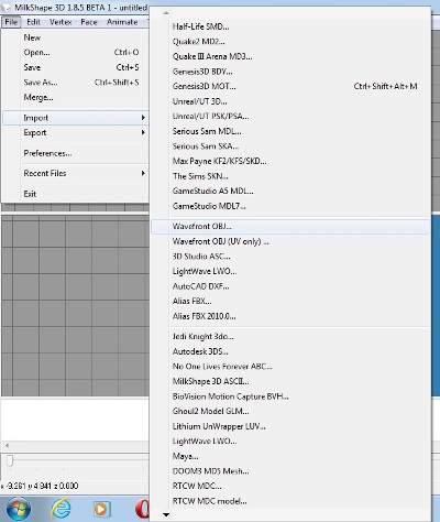 - Теперь конвертируем полученный obj в mdx с помощью milkshape 3d c плагином.