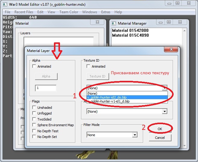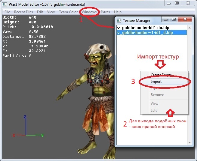 - Некоторые модели используют несколько текстур. Разумеется после конвертации у модели всего одна пустая текстура. Поэтому нужно дорабатывать модель в W3ME. Открыв модель с помощью этой программы, действуем как показано на картинках.