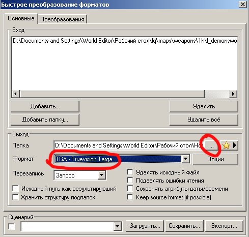 - Жмем “Ctrl+U”, и в появившемся окне выбираем, в какой формат будем конвертировать, в нашем случае это tga и выбираем папку, куда попадут конвертированные текстуры.