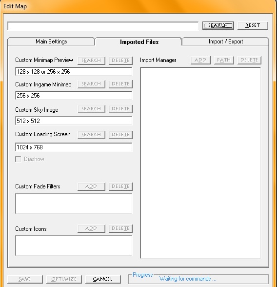 Нажимаем на Edit Map - и видим перед собой окошко с тремя вкладками. Нас интересует вкладка Imported Files, поэтому жмем на неё. Открывается волшебная шкатулка с таким видом