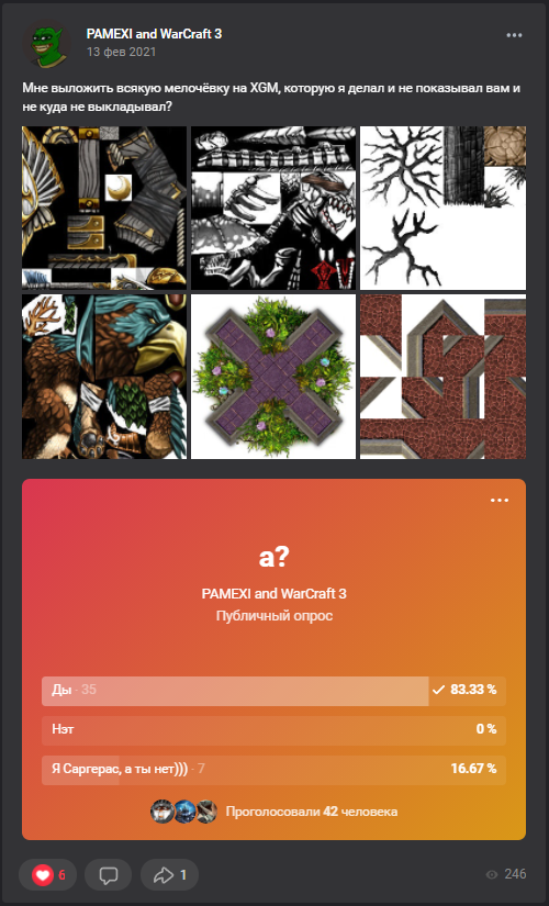 Неважно как вы меня поддержите. Я буду сильно ценит равноценно всех. Любая ваша поддержка дает мне сильный стимул для развития в среде Warcraft3. И только с вами я стану лучше)