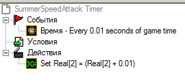 Это обычный таймер, где каждую доли секунду прибавляется переменной реала + 0,01. Триггер изначально отключён.