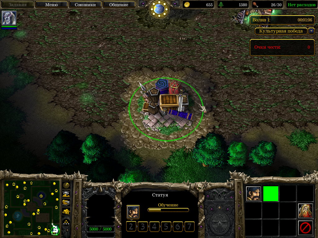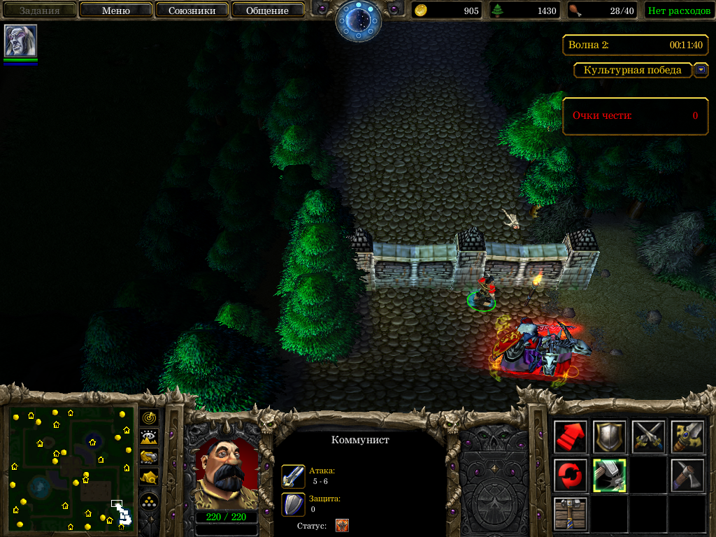 Сразу после начала игры Вам как можно скорее нужно организовать оборону базы. Таймер отображает время до наступления следующей волны и когда он дойдет до нуля Вы должны быть готовы "встретить гостей".