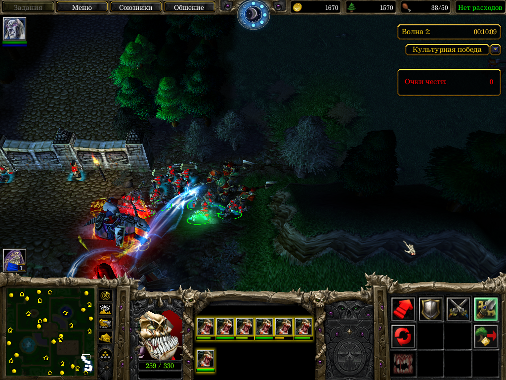 В центре карты расположена база врага, она содержит демонические врата, разрушив которые волны врагов перестанут Вас атаковать. Но защита этих врат сильна и вряд ли Вам удастся разрушить ее с первого раза или в одиночку.