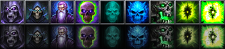 Сфера кровавого ритуала, Сфера крови, Сфера пламени, Сфера огня, Сфера святости, Сфера света, Сфера слабоумия, Сфера замедления, Сфера чумы, Сфера яда, Сфера горящей скверны, Сфера скверны, Сфера зимы, Сфера льда, Сфера глубин, Сфера воды, Сфера бури, Сфера молний, Сфера магии, Сфера колдовства, Сфера смерти, Сфера порчи, Сфера бездны, Сфера тьмы.