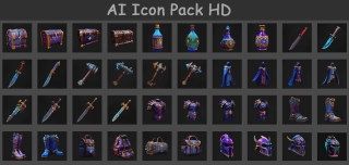 Пак разнообразного оружия разной тематики и направленности. Включает по 5 вариаций: щитов, мечей, кинжалов, топоров, луков, молотов и посохов.