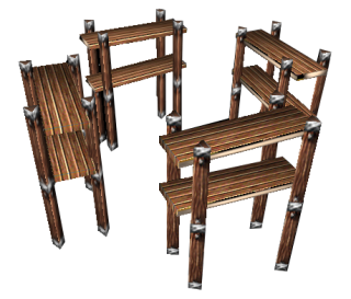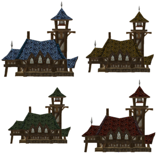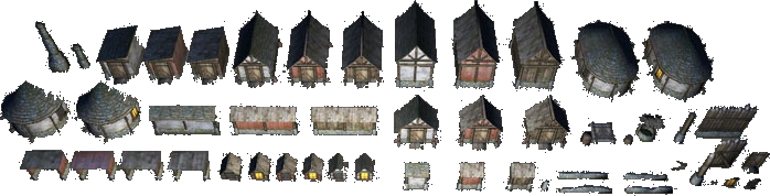 Пак деревянных зданий из домашней локации Town игры Torchlight 1. Не анимированы, могут выполнять только декоративную функцию.