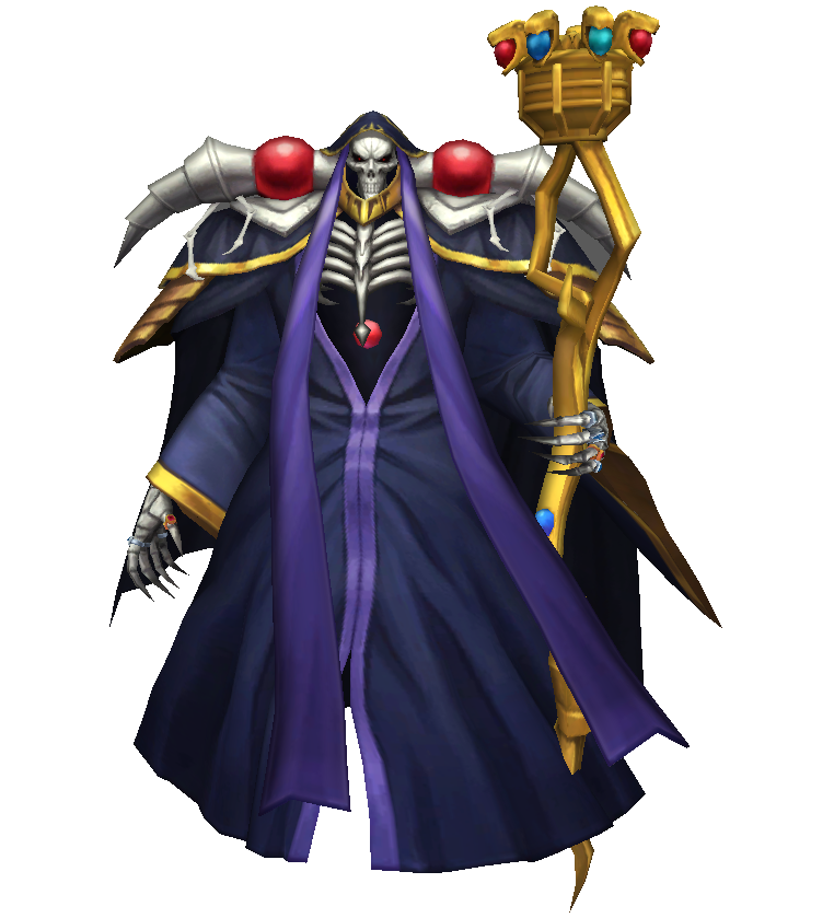 Глава гильдии «Айнз Ул Гоун», насчитывающей 41-го участника. Является высшей властью и сверхсуществом в глазах НПС, обитающих в Великой Усыпальнице Назарика, которую можно классифицировать как мини-королевство