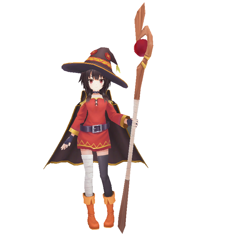 Четырнадцатилетняя архиволшебница из расы багровых демонов, присоединившаяся к группе Казумы Сато. Являясь архимагом, использует только высокоуровневую магию «Взрыв», которая с учетом её характеристик может быть использована лишь раз в день