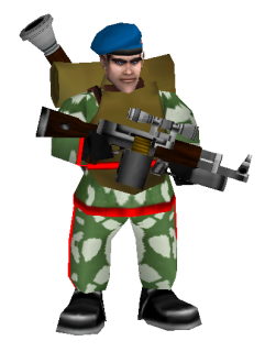Десантник с современным автоматом, оснащенным подствольным гранатометом и снайперским прицелом. Может переключаться на использование ракетницы, размещенной сзади за парашютом.