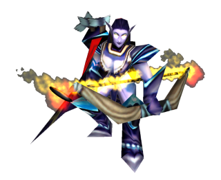 Стандартная лучница ночных эльфов с огненными глазами и горящим луком. Модель была сделана в рамках статьи по созданию источников частиц в War3ModelEditor.
