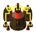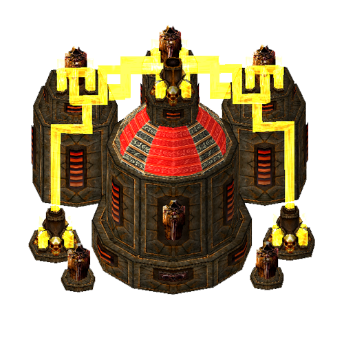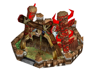 Главные защитные башни орков клана Черного камня - наблюдательная башня и 3 ее апгрейда: башня троллей, башня с катапультой и статуя демона.