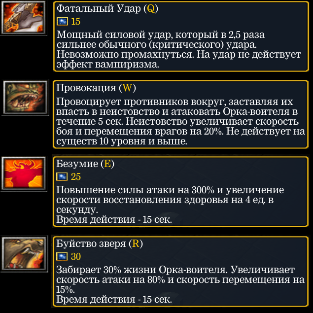Орк-воитель - это очень сильный воин, способный сокрушить толпы врагов. По сути, это основной герой, который будет именно уничтожать противников.
